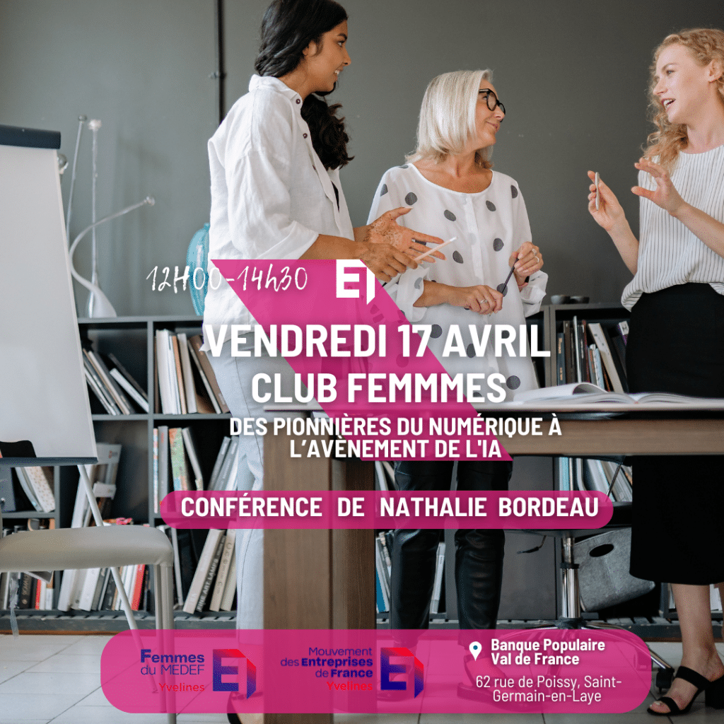 L’intelligence artificielle transforme nos métiers à une vitesse fulgurante. Pour décrypter cette révolution technologique, le Club Femmes du MEDEF Yvelines invite les cheffes d’entreprise et dirigeantes du territoire à une conférence événement le vendredi 17 avril prochain.