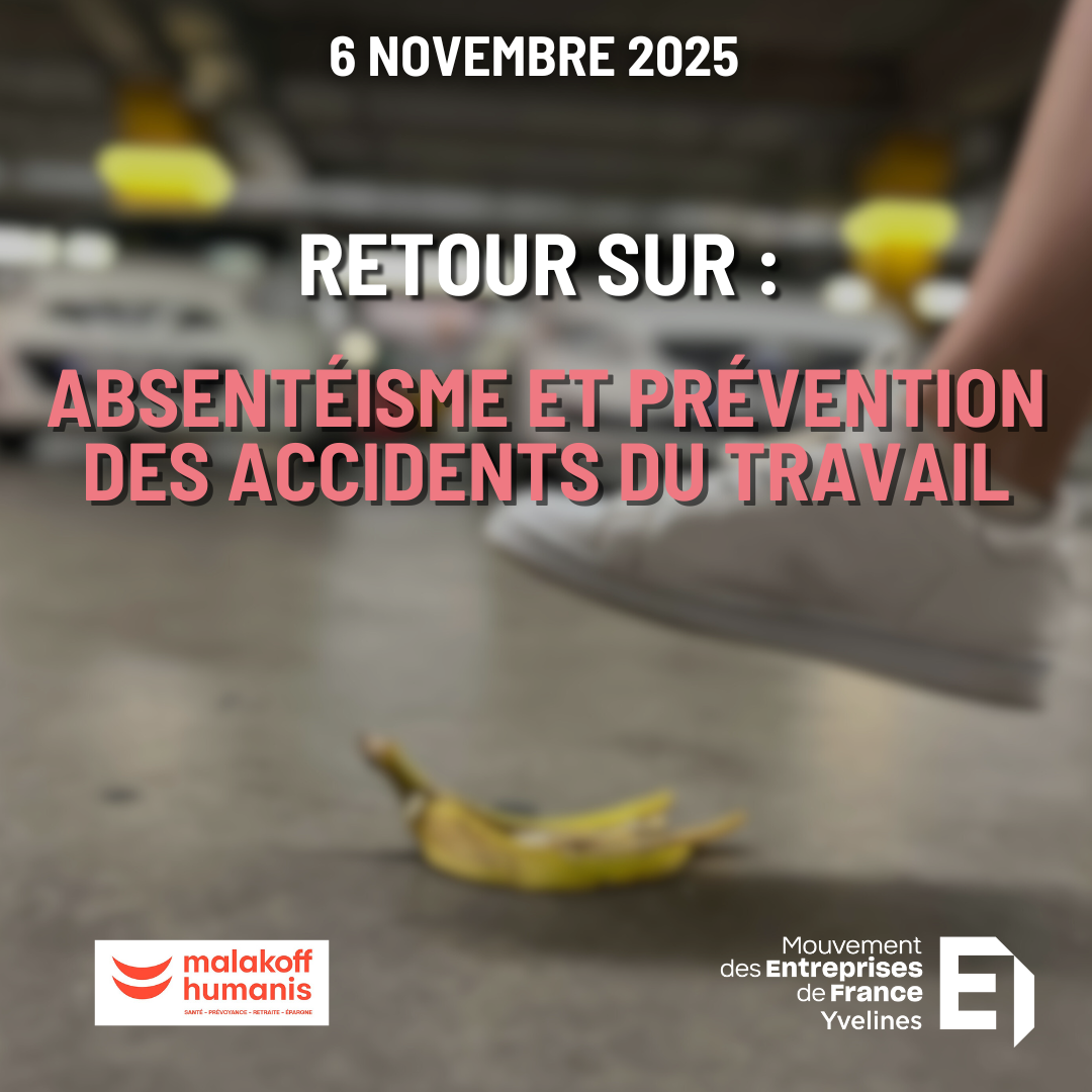 Le 6 novembre 2025, les adhérents du MEDEF Yvelines ont participé à un atelier consacré à l’absentéisme et à la prévention des accidents du travail. Une matinée d’échanges riches, appuyée sur les données 2025 du...