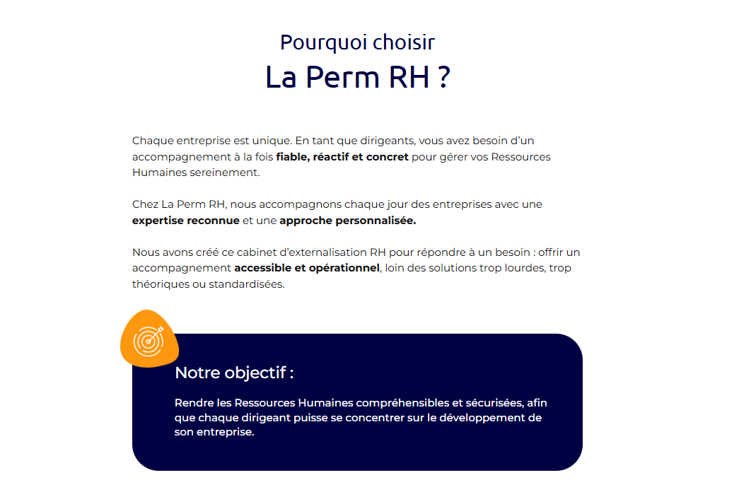 La Perm RH est née de la vision partagée d’Estelle et Camille Derrien : créer un cabinet qui accompagne les TPE et PME dans la sécurisation et l’optimisation de leurs pratiques RH, avec pragmatisme et proximité. Convaincues que la fonction RH peut être accessible, claire et efficace, elles ont conçu des solutions sur-mesure allant de l’audit RH à l’externalisation complète, en passant par le conseil stratégique.