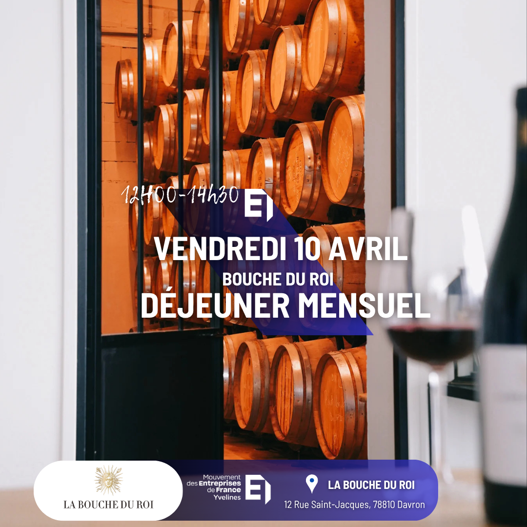 Le prochain déjeuner mensuel dédié aux acteurs économiques locaux se déroulera le 10 avril au cœur des Yvelines, sur le domaine viticole de La Bouche du Roi à Davron.