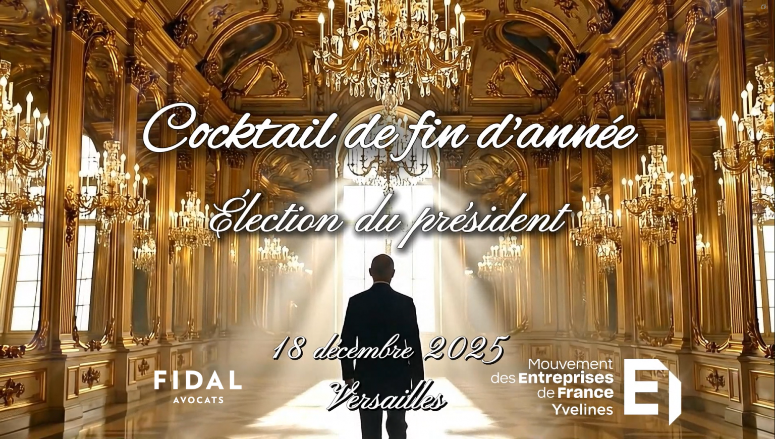 Un rendez-vous à ne pas manquer ! Le MEDEF Yvelines convie ses adhérents, partenaires et acteurs économiques à son grand cocktail de fin d’année, placé sous le signe du rassemblement et de la convivialité. L’occasion également d’assister à l’élection du futur président du MEDEF Yvelines, dans le cadre prestigieux de l’Hôtel de Ville de Versailles.